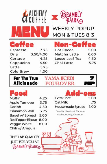 Brambly Park has a ton of parking as well as a convenient way to offer curbside pickup. Just pull up, scan our QR code, order what you'd like, and we'll bring it right out to you.